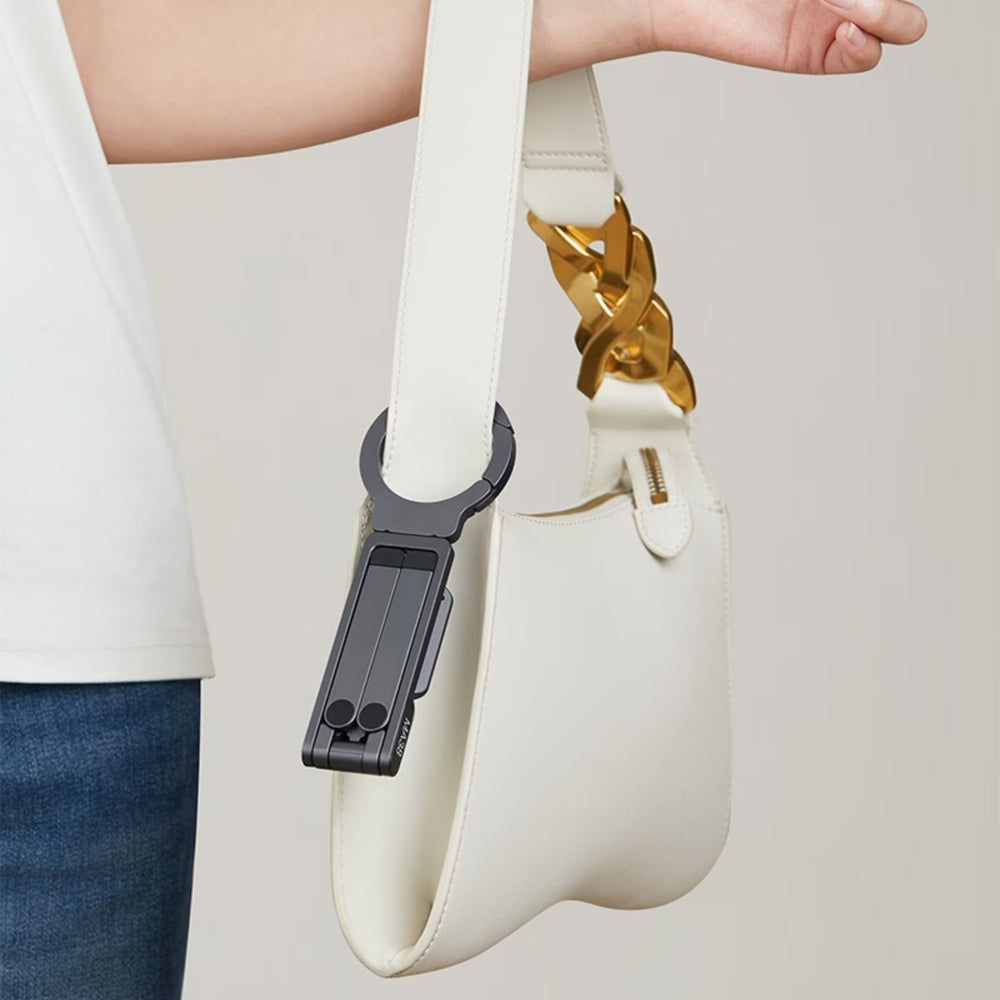 It is a total game-changer! The hidden hook allows you to hang your device from doors, monitors, or cabinets where tripods simply cannot reach. Combined with 180-degree rotation, you can capture unique high-angle shots or POV footage effortlessly, giving you the creative edge of a camera crew.